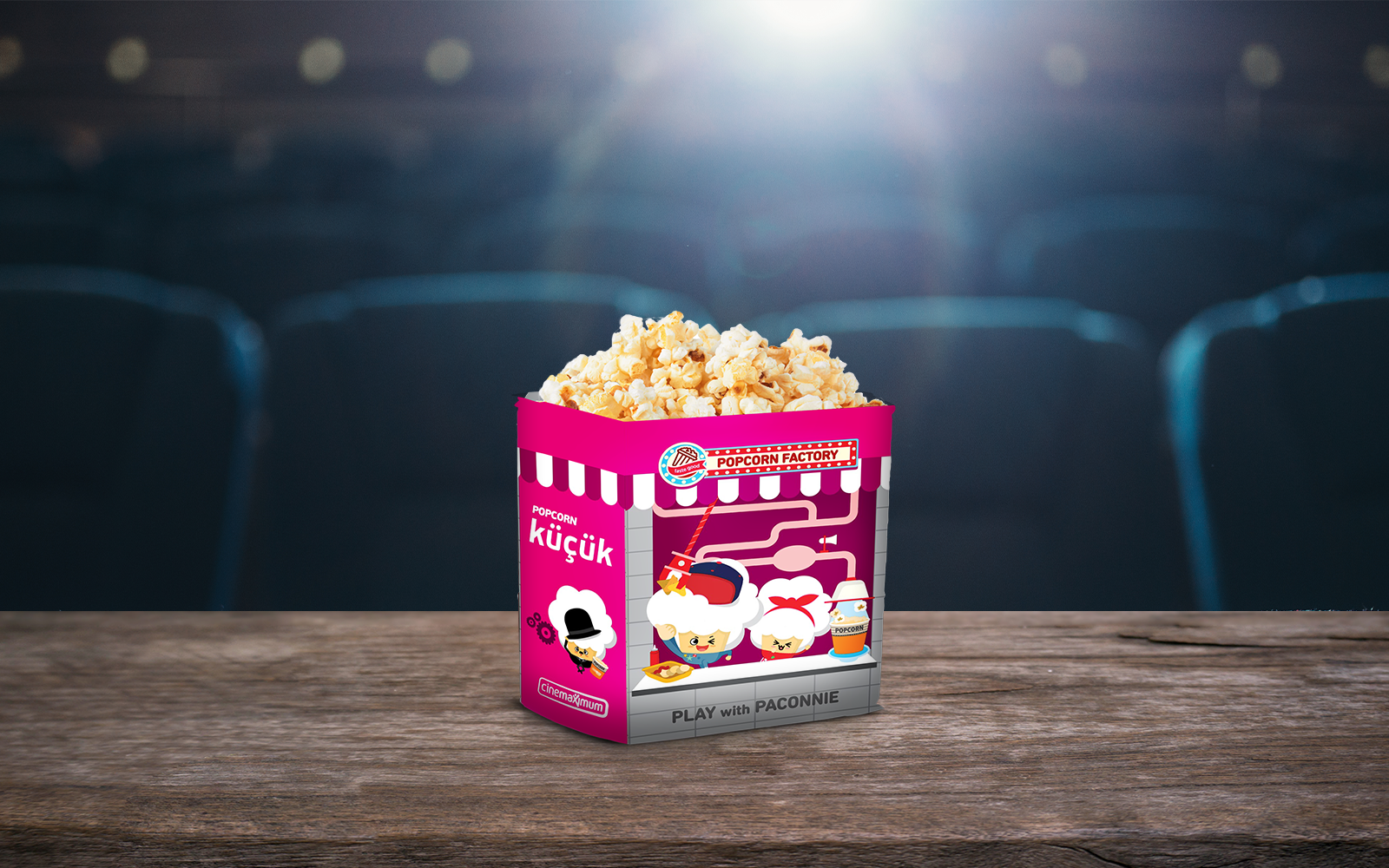 Sinema sektöründe izleyici odaklı, bireysel tüketime dayanıklı, gıda ve çevre dostu kağıt ambalaj çözümleri.